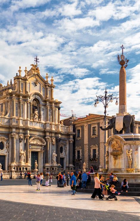 Catania is a wonderful city full of natural and architectural wonders! The historic Ursino Castle and the splendid Cathedral of Sant'Agata are worth a visit. Another point of great interest is the Elephant Fountain, a symbol of the city. The Benedictine Monastery is a structure entirely in white stone and a destination of great charm. Visitors to Catania absolutely must visit Mt Etna, one of the most famous active volcanoes in the world. Simply seeing it while travelling on the Circumetnea Railway is a great travel experience!