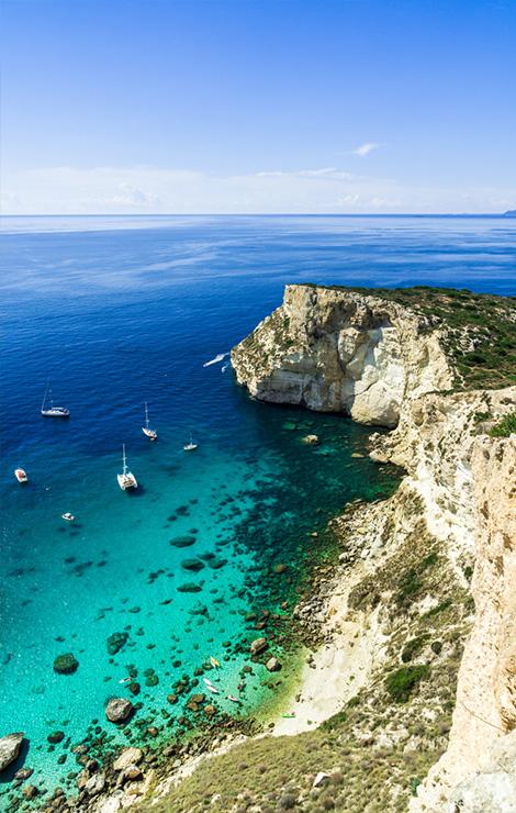 Palermo is waiting to be discovered, starting from Palazzo dei Normanni, Palermo Cathedral and the octagonal piazza of Quattro Canti, the baroque heart of the city. Make sure you don't miss the local markets, with amazing street food including arancine, bread cà meusa and sfincione. Catania rises up from the slopes of Etna and is a true architectural gem that is animated by great cultural zeal and vibrant nightlife. In Lampedusa, take a swim in Cala dei Pulcini and at the Spiaggia dei Conigli, with their Caribbean colours.