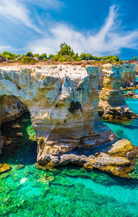 Puglia is a hospitable land, rich in natural, artistic and architectural beauties, which will awaken your senses and slow down your pace. Brindisi, which ships people and goods to Greece and the countries of the East, has always been a gateway to the Orient, and indeed its port has traded with Greek counterparts since the 7th century B.C. As such, Salento has always been a place of cultural exchange and is now a meeting point for the young people who come to enjoy the wonderful sea, good food and music under the stars.